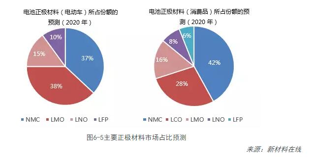 目前鎳鈷錳三元材料主要仍是和鈷酸鋰、錳酸鋰等摻雜使用于手機、平板電腦及小型動(dòng)力電池領(lǐng)域,未來(lái)的市場(chǎng)份額預計將進(jìn)一步提高,新能源汽車(chē)領(lǐng)域將成為其主要市場(chǎng)之一,而鈷酸鋰的市場(chǎng)份額將減少。