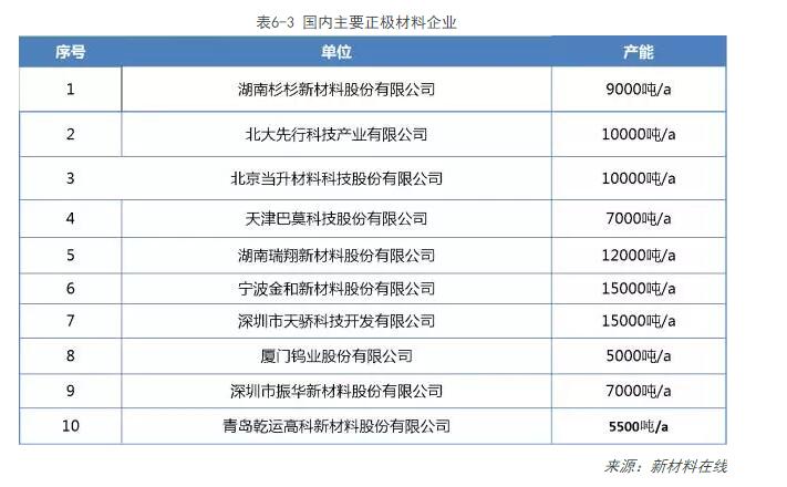 國內主要正極材料企業(yè)產(chǎn)能如下: